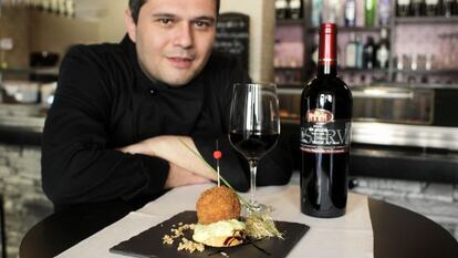 Regajal, Tagonius y Licinio son algunas de las bodegas que dan nombre a los vinos, aunque también los hay con un nombre más heterodoxo: La bruja avería, El hombre bala y La mujer cañón son algunos de los producidos por la bodega Comando G. "El nombre puede hacer que los más puristas se resistan, pero te aseguro que cuando lo prueban se dan cuenta de que son vinos muy buenos", dice Palacios. "Y la estrategia del nombre les funciona: todo el mundo se acuerda". En su restaurante servirá un tinto, reserva de 2008, Puerta de Alcalá. "Lo acompañamos con una bola —empanada— de arroz bomba con secreto ibérico y alioli de cebollino", explica Carlos Álvaro Palacios, de 35 años y uno de los dueños del negocio. "La UEC nos ofreció participar en la ruta. Ellos marcan el precio, aunque somos nosotros quienes elegimos el vino y la tapa, que se escoge intentando que maride bien con él".