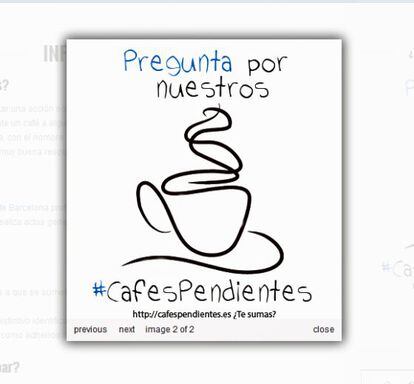 “Ponme un café con leche y te dejo otro pagado”. En esto consiste la iniciativa Cafés pendientes, en tomarte el tuyo y dejar abonado alguno más para personas que no tienen recursos. La idea la ha puesto en marcha en España hace poco más un mes Gonzalo Sapiña, un profesional del marketing barcelonés de 26 años. Navegando por la Red se enteró de que en la ciudad italiana de Nápoles existía la campaña Caffe Sospenso desde 2008 y pensó que era una buena idea implantarla aquí. “La iniciativa está al alcance de todos y en España hay una gran cultura de bares”.