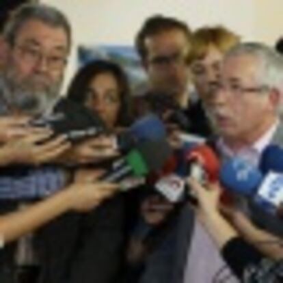 Los secretarios generales de CC OO, Ignacio Fernández Toxo, y de UGT, Cándido Méndez, dudan de que el plan de empleo de la Comunidad de Madrid tenga soporte legal y han dicho que van a mirar "con lupa" si la medida tiene "anclaje constitucional". Ambos han criticado que se justifique la medida para que no se "oxiden" los parados.
