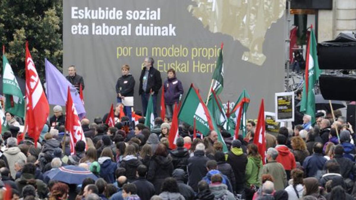 "El parlamento social contra el Parlamento vasco". Esa es la imagen que los sindicatos convocantes querían trasladar, la de unos partidos políticos que viven de espaldas a los problemas de la sociedad trabajando en plena jornada de huelga, frente a unos sindicatos comprometidos, pero esa imagen no ha podido ser. El cambio del recorrido de la manifestación central convocada por ELA y LAB, con ESK y CNT, en Vitoria ha frustrado esa confrontación en la sede de la Cámara vasca. Los convocantes, liderados por Adolfo Txiki Muñoz, de ELA y Ainhoa Etxaide, de LAB solo han podido terminar en la plaza de la Virgen Blanca, a escasos cien metros de la institución legislativa con discursos muy críticos ante los miles de seguidores que marcharon por el centro de la capital alavesa