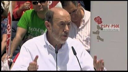 Rubalcaba se ha despedido de los socialistas valencianos con una rápida alusión a la necesidad de un cambio político en España y en la Comunidad Valenciana. "Y el PP de aquí no se puede preocupar de los parados porque tiene que hacerlo de todos sus imputados".