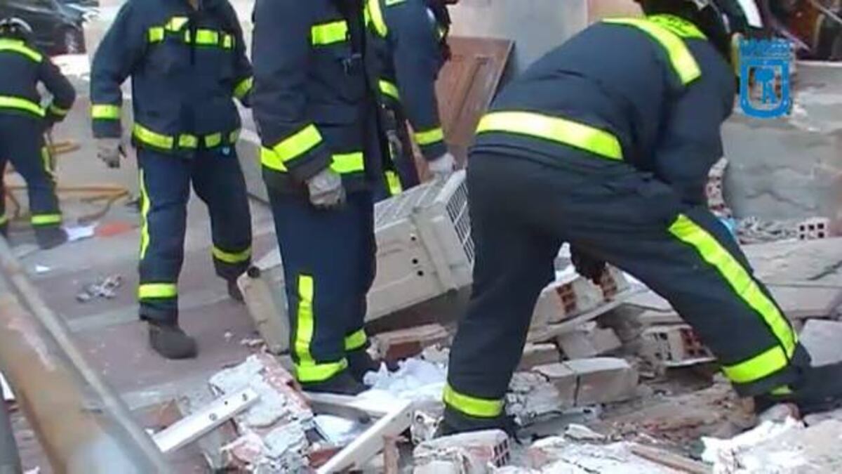 Los bomberos del Ayuntamiento de Madrid están desescombrando el local y viendo si existe algún problema en la estructura del inmueble, además de alguna fuga.