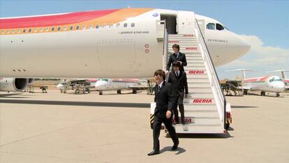 El aeropuerto de Madrid-Barajas fue protagonista ayer de un pequeño viaje en el tiempo, cuando cuatro esbeltas figuras aparecieron por la puerta delantera de un gigantesco Airbus 340-600 de Iberia. Sin monteras en esta ocasión, los estadounidenses de Beatlemajesty desembarcaron en Madrid enfundados en impecables trajes negros de corte sesentero, adornado por medias melenas y flequillos voluminosos. De esta guisa, los artistas traen al teatro Nuevo Apolo desde mañana hasta el 14 de julio, Beatlemanía, un espectáculo musical que recupera los grandes éxitos de la legendaria banda de Liverpool.