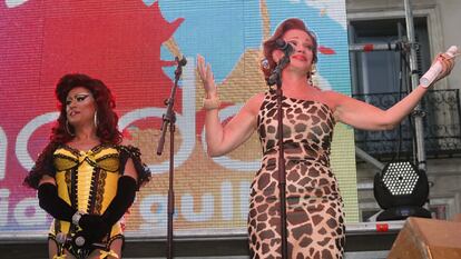 San Basilio, a quién ayer conmemoraron con el Premio Nacional Interpride, dio un pregón emotivo en un momento que también era importante para ella a nivel personal, ya que anunció hace unas semanas que abandonaba definitivamente los escenarios. “Cuando yo tenía 10 años, le dijeron a mi madre que el hijo de fulanita había salido rana, de la otra acera”, dijo frente a una plaza de Chueca donde no cabía nadie más.