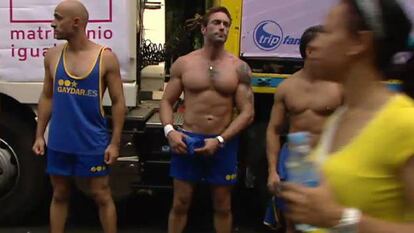 La Plexy, la drag queen que lleva años presentando la mayor y más multitudinaria fiesta de la ciudad, que congrega a un millón de personas aproximadamente, fue la encargada de decir esas palabras que hicieron saltar a la plaza. “Este año es especialmente importante para los jóvenes. No queremos que nadie se quede en el armario por miedo”, añadió en referencia al eslogan elegido para este año: Jóvenes sin armarios.