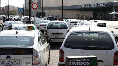 Taxistas paralizan sus servicios en las estaciones de tren y autobuses de Valencia