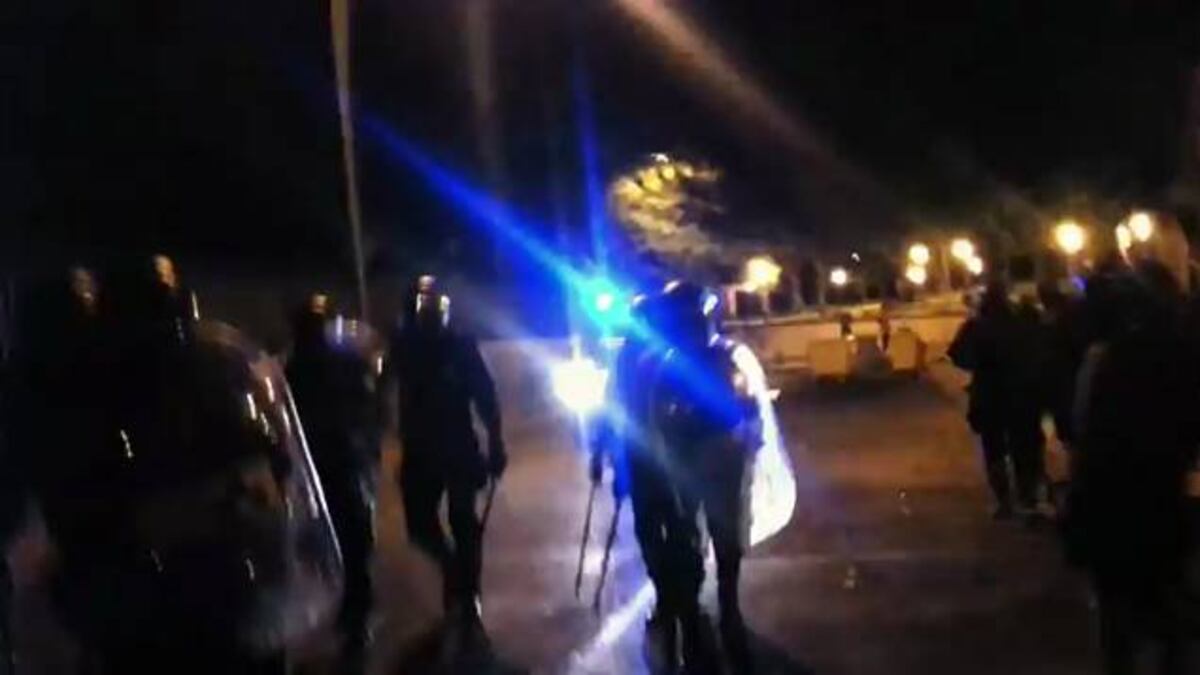 Según fuentes municipales, dos policías han resultado lesionados leves y hay un detenido por atentado contra agente de la autoridad. Está acusado de lanzar una botella contra un agente, que le impactó contra el casco.