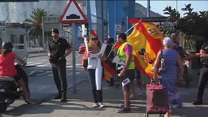 Una treintena de agentes de los Cuerpos y Fuerzas de Seguridad del Estado que habitualmente prestan sus servicios en la aduana entre Gibraltar y La Línea de la Concepción (Cádiz) se han concentrado esta mañana en los accesos a la colonia británica para denunciar el “acoso” que sufren por parte de la policía gibraltareña desde que se recrudeciese el conflicto entre el Gobierno de Madrid y el de Fabian Picardo.