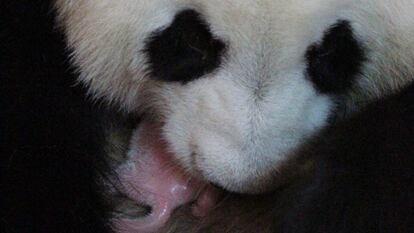 131 días después Hua Zui Ba dio a luz. Y no fue algo fácil. Solo hay que echar un vistazo a los datos para hacerse una idea de lo complejo que es para un oso panda gigante lograr descendencia. Los ejemplares en cautividad no superan los 300 y en su hábitat natural los 1.600. En solo tres años, el Zoo Aquarium de Madrid ha obrado el milagro en tres ocasiones. Y ayer volvió a ocurrir. Tras cuatro horas de parto, llegaba al mundo un ser diminuto de piel rosada cubierto de lanugo. No se sabe el nombre, ni si puede haber una segunda cría, aunque el paso de las horas mengue esa posibilidad. De momento se encuentra en el regazo de su madre, la oso panda gigante Hua Zui Ba. El primer mes es crítico para su supervivencia.