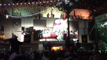 Antes del pregón, una de las peñas cantado el 'Cara al sol' en la plaza del pueblo.