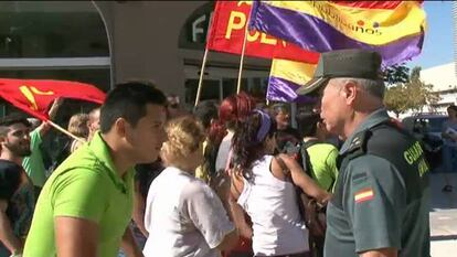 Unas 150 personas ocuparon la vía y pidieron la dimisión del presidente valenciano