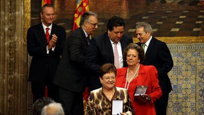 Era de ver. La alcaldesa de Valencia, Rita Barberá; el presidente de la Diputación de Valencia, Alfonso Rus; la presidenta de la Diputación de Alicante, Luisa Pastor; el presidente de la Diputación de Castellón, Javier Moliner. Todos cargos institucionales del PP. Y, junto a ellos, como un elemento extraño a la tarta partidista, pero necesario, el alcalde de Benidorm, Agustín Navarro, del PSPV-PSOE. Los cinco recibían la Distinción de la Generalitat por presidir respectivamente sus marcas turísticas. Por, como dijo el presidente Fabra, “su labor eficaz en el excelente desarrollo de los destinos y productos turísticos de la Comunidad Valenciana”. Sorprendentemente, en esa sociedad de bombos mutuos constituida por instituciones del PP, no estaba el consejero de Turismo. A lo que se ve Máximo Buch y su departamento no han hecho todavía una labor eficaz y excelente para ser galardonados con semejante distinción. Todo se andará