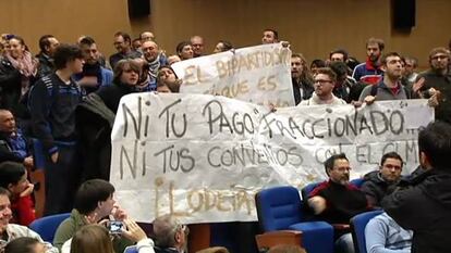 Medio centenar de manifestantes irrumpe en una charla en protesta por los cortes de luz y agua