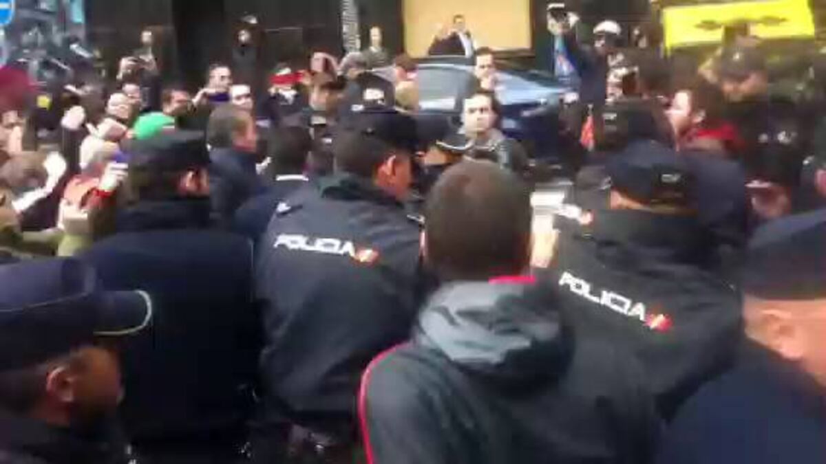Cuando salió Fabra, las cosas se complicaron. Para impedir que los trabajadores se acercaran al coche oficial, los agentes de la Policía Autonómica empezaron a empujar y forcejear. Con el presidente ya dentro, el coche recibió manotazos y patadas hasta que emprendió la marcha.
