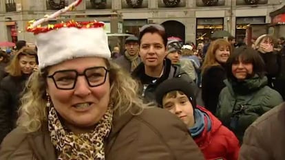 Se ha convertido ya en tradición y cada vez son más los madrileños y visitantes que adelantan un día la celebración del fin de año. Anoche no fue una excepción y centenares y centenares de personas se congregaron en la Puerta del Sol para comerse las 12 uvas de Nochevieja en la antesala de esta festividad. Disfrazados de todas las maneras imaginables, y en más de una ocasión con alguna copa de más, los concentrados cumplieron con el ritual de los 12 sones y los correspondientes frutos verdosos. Tampoco faltaron sustitutos de las uvas como gominolas, turrón, palomitas o gajos de mandarinas regadas con champán, cava lambrusco, ron, cerveza o sidra.