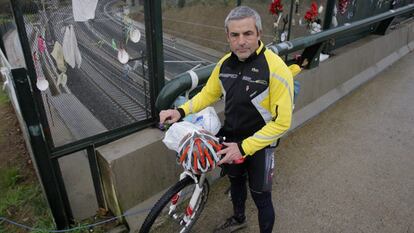 Antes de llegar al juzgado a bordo de su bici, Cristóbal entró en Santiago por Angrois, por donde lleva siglos discurriendo esa Ruta de la Plata que él inició en Sevilla. Allí se detuvo a colocar un ramo de flores en la verja que lleva siete meses acogiendo los homenajes a los fallecidos. Y allí paró a hablar con los vecinos que el 24 de julio saltaron a las vías para socorrer a los pasajeros del tren. El propio Cristóbal, con una brecha en la cabeza, ayudó a sacar heridos de entre los restos del tren hasta que las fuerzas lo abandonaron y, pensando que iba a morir, se despidió de su mujer con un mensaje telefónico. Ahora el teléfono tampoco para. Son periodistas de toda España que quieren que les cuente su viaje. Cristóbal, paciente, atiende a todos, porque lo que él quiere es que nadie se olvide de la tragedia de Angrois.