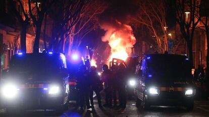 La protesta en la calle se intensificó cuando algunos manifestantes lanzaron petardos al aire, al grito de “quien siembra miseria, recoge rabia”. Los jóvenes continuaron una marcha improvisada cortando la Gran Via, escoltados por una decena de furgones de los antidisturbios. En la entrada a la plaza de Cataluña por Pelai, los manifestantes volcaron decenas de contenedores y causaron algunos desperfectos en un cajero automático. La concentración acabó ante las puertas de la Facultad de Filosofía de la Universidad de Barcelona, en el barrio de El Raval, con una asamblea.