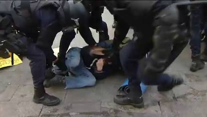 Un detenido en el desalojo por la policía de unos concentrados en Sol