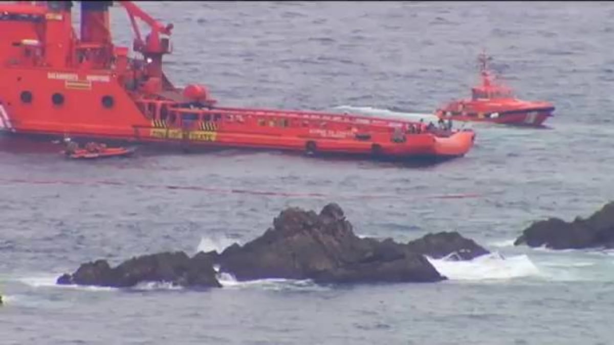 Durante las inmersiones por parte de buceadores de Salvamento Marítimo y del Grupo Especial de Actividades Subacuáticas de la Guardia Civil se ha comprobado que el pesquero, de 35 metros de eslora, está totalmente apoyado en el fondo marino sobre el costado de babor y separado 30 metros de la piedra en la que antes estaba encajado por su zona de popa.