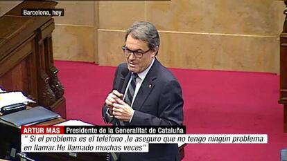 El presidente de la Generalitat, Artur Mas, ha emplazado este miércoles al Gobierno a presentar una propuesta de reforma de la Constitución en la línea de lo que ayer apuntó el presidente Mariano Rajoy durante el debate sobre la consulta catalana en el Congreso. Mas ha parafraseado al líder de CiU en el Congreso, Josep Antoni Duran Lleida, y ha exigido a Rajoy que, si quiere dialogar sobre el futuro de Cataluña, “ponga fecha y hora” para el encuentro. Eso sí, también ha asegurado en sede parlamentaria que la hoja de ruta soberanista continuará pese a la votación de ayer en el Parlamento y también analizará "qué dan de sí los marcos legales internacionales".