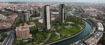 El Ayuntamiento de la capital, gobernado por Ana Botella (PP), aprobará mañana el plan urbanístico, al que ha tenido acceso EL PAÍS, del área ocupada ahora por el estadio del Atlético de Madrid y por la antigua fábrica de cerveza de Mahou (demolida a finales de 2010). El club se mudará en 2016 al estadio de La Peineta, en el distrito de San Blas, que lleva tres años en obras. Junto al río Manzanares se levantarán dos rascacielos gemelos de 36 pisos, y ocho bloques de siete a 22 alturas, con una superficie edificable total de 175.365 metros cuadrados.