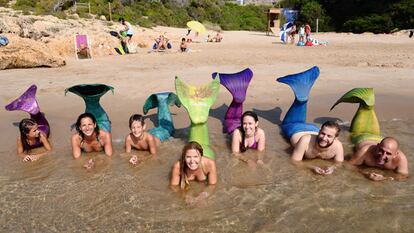 Los bañistas más antiguos de Cala Romana, en Tarragona, aún recuerdan los años en los que las sotanas inundaban la llamada playa de los Capellanes. La ensenada fue hasta los años sesenta el balneario favorito de curas y seminaristas de la zona. Hoy, es más fácil encontrar a sus orillas a un grupo de personas con cola de pez. Se arrastran de espaldas, adentrándose en el mar con una mujer de cola verde y amarilla como líder. Se dan media vuelta y comienzan a nadar. Durante la próxima hora, aprenderán a moverse en el agua como seres mitológicos. Por algo han pagado 49 euros, para ser alumnos de la primera academia de sirenas de Europa.