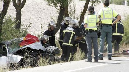 En el mismo vehículo viajaba un varón de 57 años, que tuvo que ser liberado por los bomberos de la Comunidad de Madrid. Facultativos del Servicio de Urgencias Médicas de la Comunidad de Madrid le diagnosticaron un fuerte traumatismo torácico.