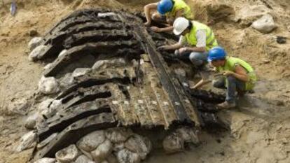 Durante los trabajos de excavación realizados en 2008 apareció, a siete metros bajo el nivel de la calle, una pieza excepcional. Se trata de los restos de un barco medieval del siglo XIV que por su construcción tenía un origen atlántico. Al principio pensó que podría ser una nave vikinga pero ahora se piensa más en un origen cantábrico. Los restos permanecen en el Centro de Arqueología Subacuática de Cataluña de Girona en remojo, en un proceso de deshumificación que ha de permitir su conservación una vez fuera del agua. Ciurana anunció ayer que el barco, cuando vuelva a Barcelona, ingresará en el Museo Marítimo para terminar su proceso de restauración, pero que todavía no estaba claro si se expondría en este centro o en el Museo de Historia de Barcelona, dos centros que se han disputado esta pieza tan valiosa.