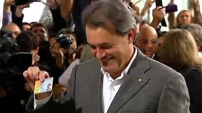 El presidente de la Generalitat, Artur Mas, logró ayer la imagen que buscaba en la votación no oficial sobre la independencia. Las colas en los centros electorales, la ausencia de incidentes y las urnas llenas con más dos millones de votos hicieron que la Generalitat calificara de “éxito total” la jornada del 9-N, pese a la suspensión del Tribunal Constitucional que pesaba sobre ella. El resultado permitió al presidente de la Generalitat recuperar la iniciativa política frente a Esquerra Republicana y lanzar a Mariano Rajoy la petición de negociar una “consulta definitiva” sobre el estatus de Cataluña.