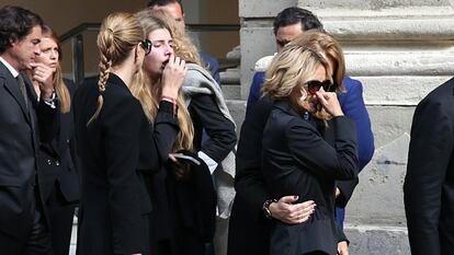 Tras llegar con una hora de retraso, el coche fúnebre —un Mercedes plateado— ha salido de la Casa de las Dueñas pasadas las 13.15 con dirección al Ayuntamiento. El vehículo ha abandonado el palacio en medio de una cascada de claveles blancos y aplausos. "Duquesa, guapa", han gritado algunos de los asistentes. Detrás, han salido varios vehículos con los familiares. En el primero, iban el marido de Cayetana, Alfonso Díez, y su hijo Carlos. En el segundo, su nieta Cayetana, hija de Francisco Rivera y Eugenia Martínez de Irujo, no podía reprimir el llanto y trataba de secarse las lágrimas con un pañuelo.