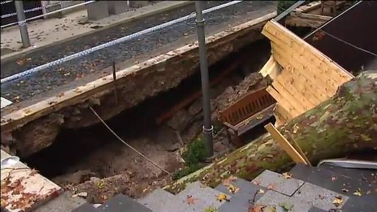 El fuerte temporal provoca un socavón de diez metros en plena Rambla de Figueres