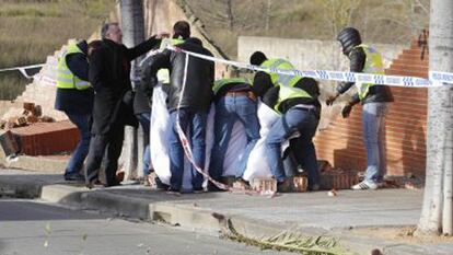 El muro derrumbado pertenece a la antigua fábrica de AEG, actualmente abandonada. Los servicios de emergencias se apresuraron a desescombrar la zona avisados por una llamada de teléfono que indicaba la posibilidad de que hubiera al menos una víctima bajo los ladrillos del muro. A las 13:30 horas los Bomberos hallaron el cuerpo sin vida de un hombre de 27 años; a las 16:00 horas han localizado bajo de los escombros el cadáver de una joven de entre 15 y 17 años. El Consistorio de Terrassa ha decretado dos días de luto por los dos fallecimientos.