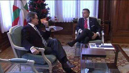 El lehendakari y su homólogo catalán mantuvieron un encuentro en la residencia oficial del primero durante aproximadamente una hora y media. No hubo declaraciones de ninguno de los responsables institucionales. El Gobierno Vasco informó a través de un comunicado de que en la “reunión de trabajo” entre Urkullu y Mas se abordó la situación económica y política de ambas comunidades autónomas, así como la “crisis institucional del modelo de Estado” que, según ambos, “se está agravando” en España.