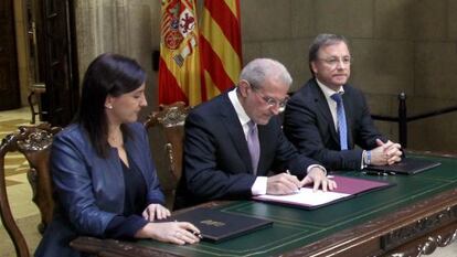 Los rectores Esteban Morcillo (Univesritat de València), Francisco Mora (Universidad Politécnica), Manuel Palomar (Universidad de Alicante), Jesús Tadeo (Universidad Miguel Hernández) y el mismo Climent por la Jaume I, han firmado convenios específicos para cada universidad con los consejeros María José Català y Juan Carlos Moragues. La firma se ha celebrado ante el presidente Allberto Fabra in extremis, puesto que debía hacerse antes de acabar el año para que sus beneficios comenzaran a contar en el ejercicio que ahora acaba y a reflejarse en los presupuestos universitarios del próximo año.
