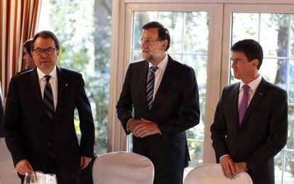 Las palabras de Rajoy tuvieron como escenario el acto inaugural de la polémica interconexión de la línea eléctrica de alta tensión entre España y Francia, en Montesquieu-des-Albères, cerca de Perpiñán y en presencia del primer ministro francés, Manuel Valls. Rajoy aprovechó la ocasión para resaltar la colaboración institucional entre ambos Gobiernos y se refirió en dos ocasiones a Valls como “mi amigo”. El presidente español abogó por la colaboración institucional al reivindicar el "ideal europeo" de colaboración entre países y en contra de la segregación territorial.