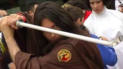 Fans de 'Star Wars' se citan en un cine en Barcelona donde, vía satélite, se presentó la nueva entrega de la saga