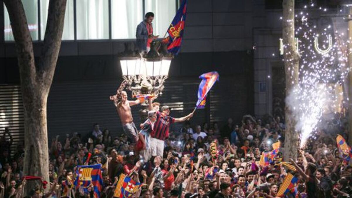 Aficionados celebran el título del FC Barcelona en Canaletas.Foto: atlas | Vídeo: Atlas / Massimiliano Minocri
