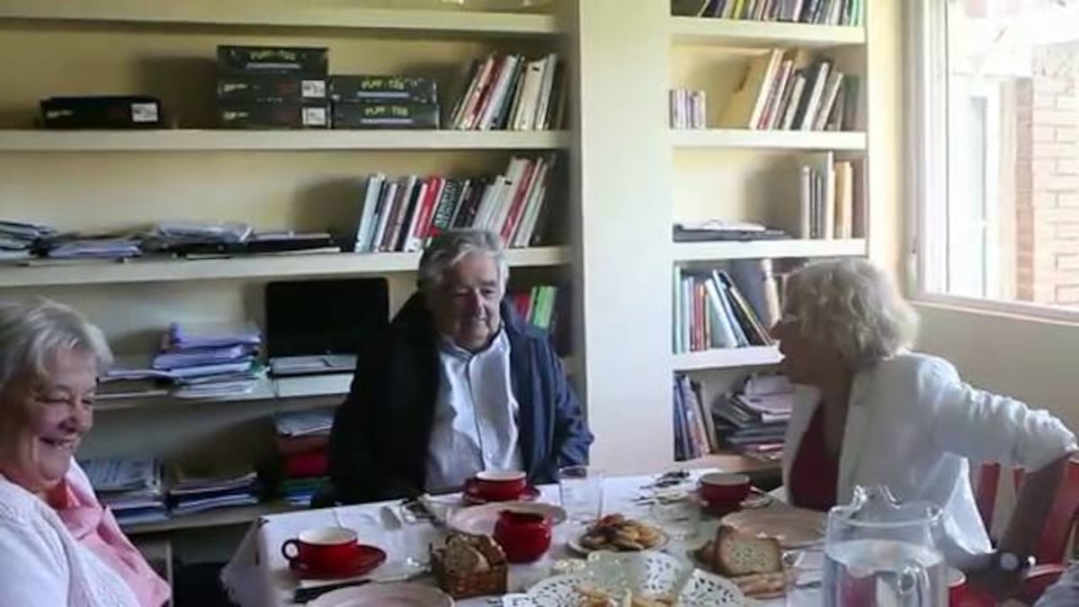 “Él me decía que no piensa jubilarse nunca de trabajar porque el mundo sea mejor”, desveló Carmena tras la primera reunión con Mujica en la embajada. El exgobernante uruguayo declinó vivir en el palacio presidencial tras ganar las elecciones. Se mantuvo en su chacra (granja) a las afueras de Montevideo junto a su mujer Lucía —una activista de izquierdas muy comprometida en su país— y un perro tullido.