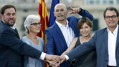 15 de julio. Raül Romeva, Carme Forcadell y Muriel Casals confirman que ocuparán los primeros puestos de la lista por delante de Mas y Junqueras.