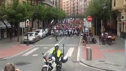 En torno a un millar de personas han revindicado en Bilbao la amnistía sin condiciones de todos los presos de ETA encarcelados en Francia y España, en una marcha que ha comenzado en Zabalburu y ha terminado en la Plaza Moyua. Sin el respaldo de la izquierda abertzale, que celebró el viernes una marcha en favor de la excarcelación de los presos enfermos, y con unas demandas que Sortu ya ha abandonado al menos en el plano público, la plataforma Movimiento Pro Amnistía y Contra la Represión, ha rechazado la acepción de terroristas para los presos de la banda y ha reclamado el mantenimiento del apelativo de presos políticos. En un comunicado final han incluso aconsejado a la izquierda abertzale que si no comparte la "utopía" de pedir la amnistía, al menos "que no moleste".