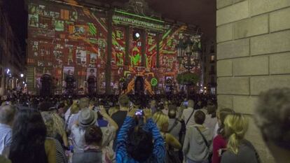 Es como ver una foto de carné de identidad aumentada descomunalmente hasta poder apreciarla en buena parte de la fachada del Ayuntamiento de Barcelona. Los ciudadanos que enviaron sus fotos para formar parte del mapping que este año se proyecta cada noche de la Mercè podrán comprobar el resultado.