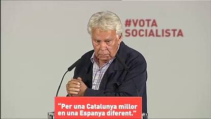 Ha sido la única intervención de González en la campaña catalana, en apoyo del candidato del PSC, Miquel Iceta, que ha recibido el apoyo del PSOE como nunca se había producido, con la presencia del secretario general Pedro Sánchez en 10 de los 15 días de campaña y un desfile también inédito casi todos los presidentes autonómicos socialistas.