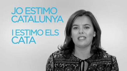 Los líderes nacionales del Partido Popular (PP) han sumado fuerzas y en la última jornada de la campaña electoral del 27-S han presentado un vídeo en el que todos hablan en catalán, pidiendo una España unida. En la publicidad electoral aparecen, lanzando diferentes mensajes desde el presidente del Gobierno, Mariano Rajoy, que cierra el vídeo diciendo "unidos ganamos", hasta la vicepresidenta, Soraya Sáenz de Santamaría —"yo quiero a Cataluña y a los catalanes"—, o los ministros Alfonso Alonso (Sanidad) y Jorge Fernández Díaz (Interior).