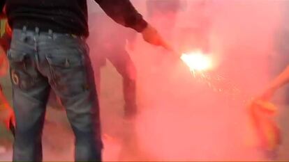 Unos 300 seguidores ultraderechistas han marchado este lunes por la montaña de Montjuïc donde han reivindicado la españolidad de Cataluña con motivo del día de la hispanidad. Los manifestantes se han mostrado nostálgicos de épocas franquistas y han reclamado a gritos la unidad de España, incluso solicitando la “cámara de gas” para aquellos que la cuestionan poniendo especial énfasis en la victimización de Artur Mas. Media hora después de comenzar la manifestación los marchantes se concentraban en la plaza Sant Jordi de Montjuïc donde llegó el clímax de la marcha con una traca de petardos, varias bengalas y la quema de media docena de estelades e incluso una pancarta de la Assamblea Nacional Catalana (ANC) que se consumía entre llamas mientras se oían gritos de “viva España” y se presenciaban decenas de manos en alto.