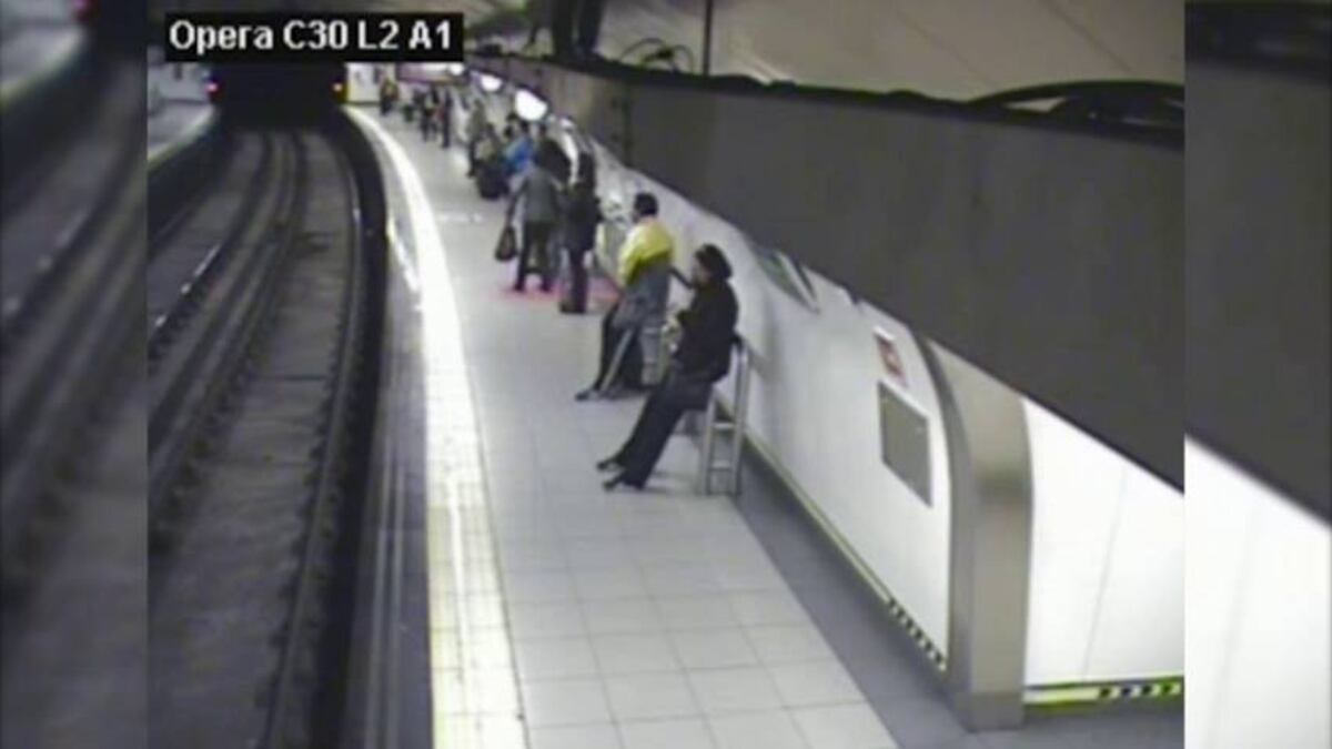 El agente se tiró a salvar al anciano un minuto antes de la llegada del convoy en Ópera