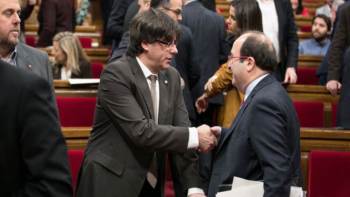 El autoimpuesto mandato corto motivó que Miquel Iceta, líder del PSC, ironizara sobre cuántos días de gracia tiene el nuevo Gobierno antes de empezar con las críticas: 37, en vez de los habituales 100. El socialista fue de los pocos que no se cerró a llegar a acuerdos con el Ejecutivo de Puigdemont en temas ajenos al proceso independentista: "Vemos una actuación más cauta, más meditada, y más segura. Si el tiempo confirma esta sensación podrá contar con la leal colaboración de nuestro grupo".