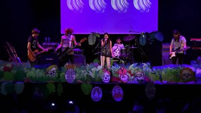 El diálogo acontece en el patio de butacas del Teatro Lara, fila 6, pocos minutos antes de que el reloj marque las 13.30 y se apaguen las luces. Es el mismo escenario que, durante tantas noches de horarios intempestivos, acoge ciclos de estrellas internacionales del rock emergente, el blues clásico o el pop para gourmets. Pero la convocatoria de este sábado es muy distinta. Entre el público, mucha parejita joven, escasas barbas malasañeras y casi un 50% de críos y crías que con seguridad no se han puesto aún a preparar la primera comunión. Y sobre las tablas, adornadas con recortables de colores, caretas tribales y cartones que evocan vegetación selvática, la última sensación del rock juvenil. Seamos más precisos: del rock preadolescente. Cinco micos, nunca mejor dicho, acompañados por un bajista adulto (Gonzalo Maceira) al que no le ponemos cara porque la sustituye por la de un mono feo y melenudo.