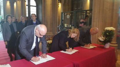 La segunda teniente de alcalde del Ayuntamiento de Barcelona, Laia Ortiz, también se dirigió hasta el vestíbulo para dar el pésame en nombre del consistorio. También lo hizo la presidenta del Parlament, Carme Forcadell. La Universitat de Barcelona mantendrá abierto el vestíbulo hasta el próximo miércoles. Todo aquel ciudadano que quiera mostrar sus condolencias podrá hacerlo