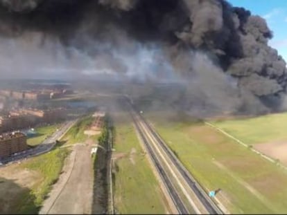 Un gran incendio en Seseña arrasa el mayor cementerio de neumáticos de España