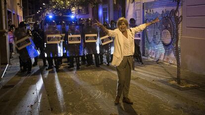 Los Mossos d’Esquadra avisaron por megafonía en diversas ocasiones de posibles cargas a las personas que tenían delante, algunas de las cuales se estaban armando con piedras y palos. Finalmente, ante la amenaza, los allí reunidos abandonaron a la carrera el lugar, dejando un reguero de contenedores volcados y alguno quemado en la calle de Gran de Gracia.